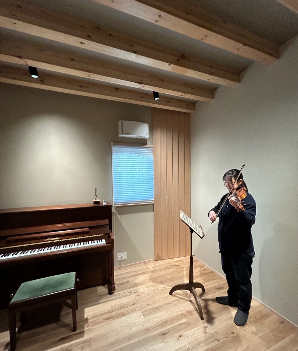 松戸で工事中の「音楽室のある家」が完成し竣工写真撮影も終了、オープンハウスには多くの方が見学に来られた。音楽演奏のための防音室は専門工事業者に依頼するよりもはるかに安く雰囲気の良いものができたと思う。