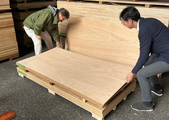 毎回ですが現場のたびに使用するラワン合板(当たり外れが非常に多い)を選定しに新木場の材木屋さんへお邪魔する。昨日は松戸の家の天井と建具に使用する5.5mm(36サイズ)、2.5mm(48サイズ)の合板を選定した。あっさり今回は綺麗なものが見つかり一安心。